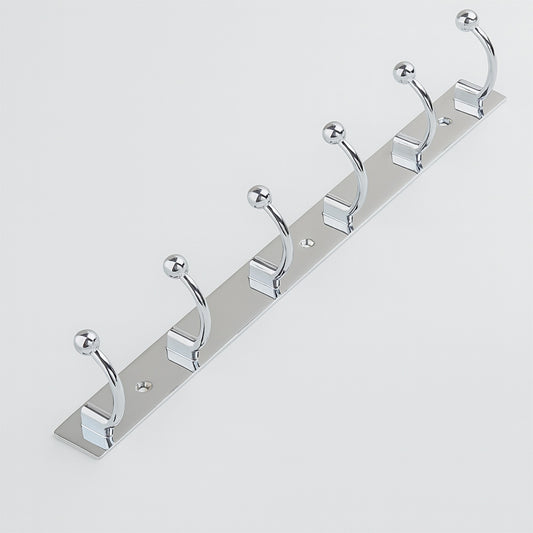 Primehut® 6 & 8 Pin Chrome Wall Hanger – Sleek Half-Curve Metal Hook Rail for Home & Office Organization